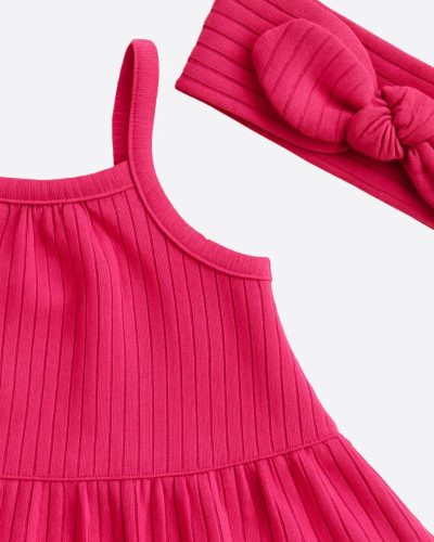 Kit 2 peças Vestido Bebê Com Faixa de Cabelo Pink Menina