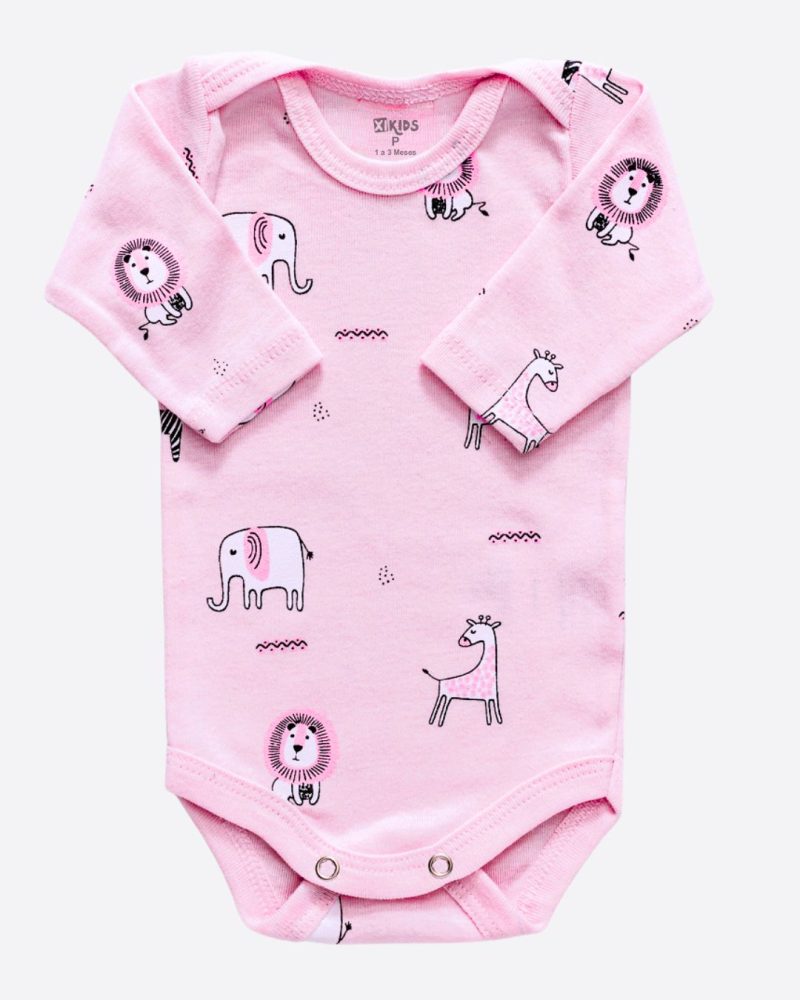 Body Bebê Rosa Manga Longa Safári Menina
