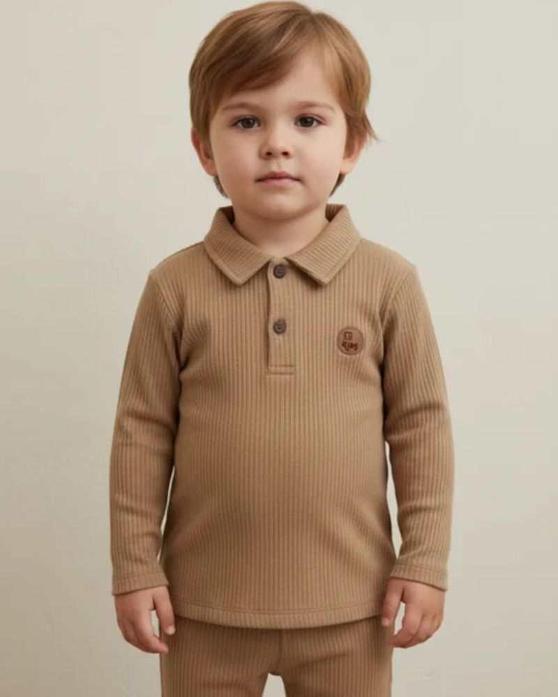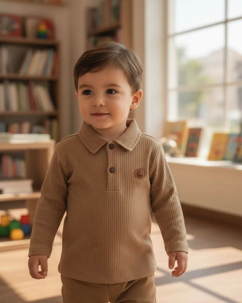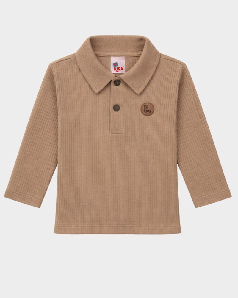 Camisa Polo Infantil Manga Longa Canelado Cappuccino