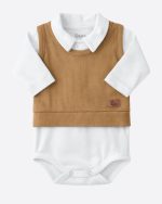 Este conjunto é composto por duas peças feitas inteiramente de algodão, oferecendo conforto e estilo ao seu bebê! O body possui botões na gola para facilitar ao vestir, tornando o processo mais prático. Além disso, o colete possui uma textura no tecido que adiciona um charme extra ao visual. APOSTE!