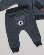 Conjunto Bebê 2pç Atoalhado Bordado Urso Cinza