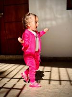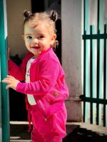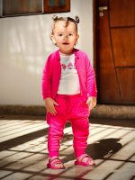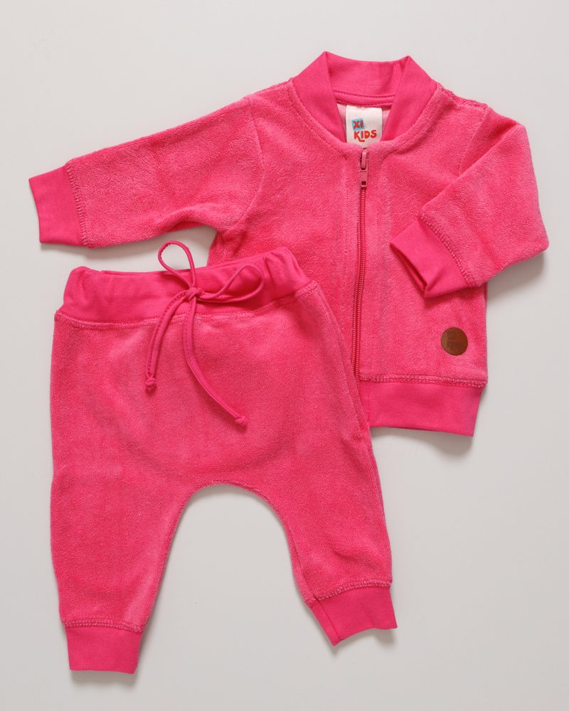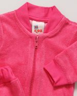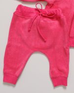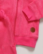 Esse conjunto atoalhado é composto por uma jaqueta com zíper frontal e uma calça jogger com cós elástico, ideal para garantir liberdade de movimentos e um vestir fácil. O destaque vai para o bordado encantador de ursinha na parte de trás da calça, o tecido felpudinho deixa o look ainda mais fofo.