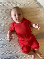 Conjunto Bebê Canelado Verão e Tapa Fralda Unissex Vermelho Natal