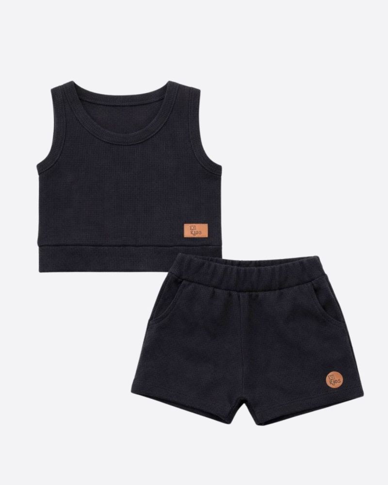 Nos dias de verão, combine o shorts com o colete, criando um look fresco e estiloso. Já no outono/inverno, o colete fica perfeito sobre o body, garantindo aconchego e charme. O shorts e o colete são feitos de malha block, com a mesma textura, o que dá um toque de harmonia e sofisticação à produção.
