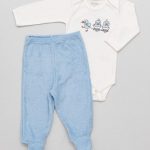 Conjunto Body Manga Longa e Calça com Pezinho Atoalhada Azul