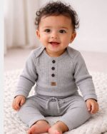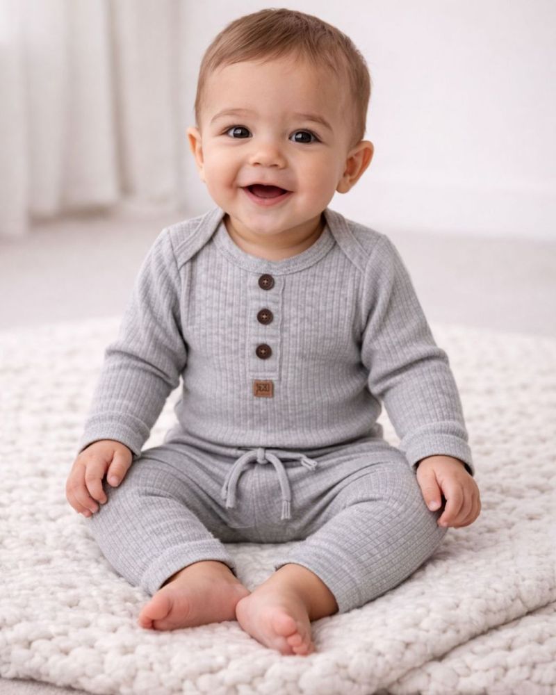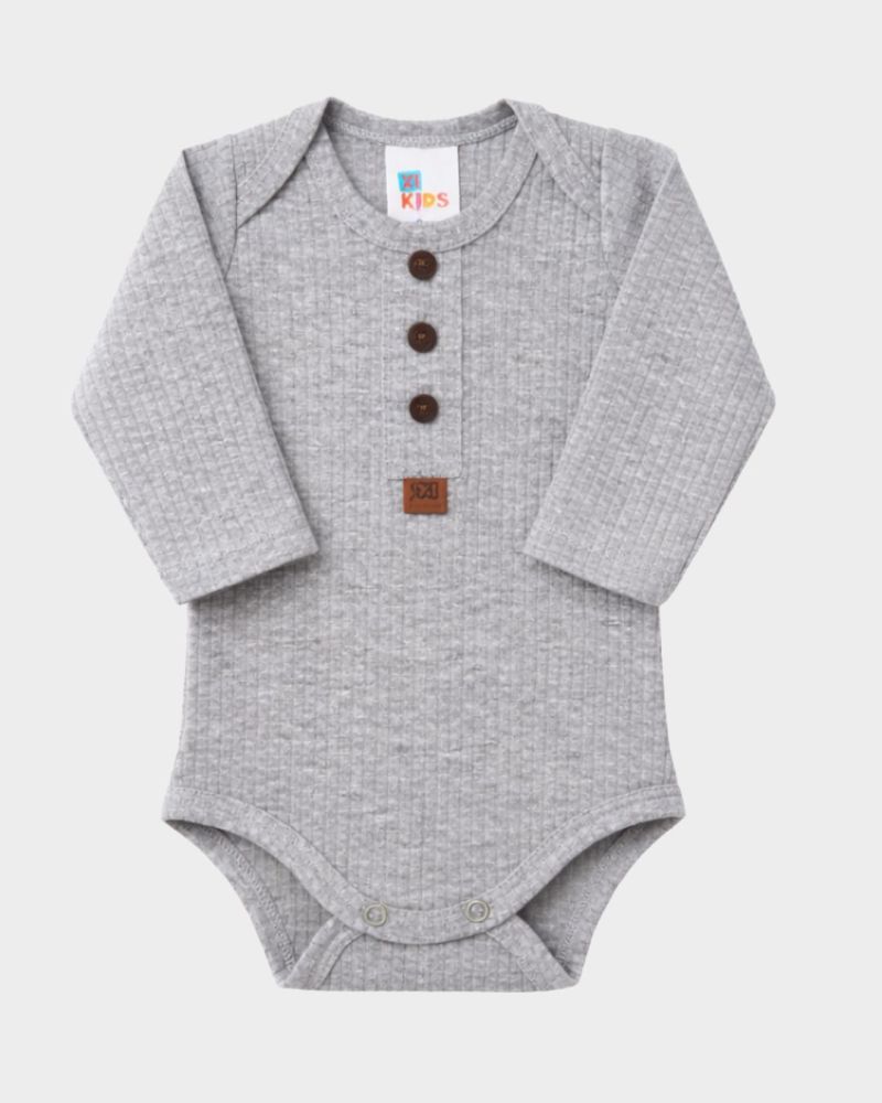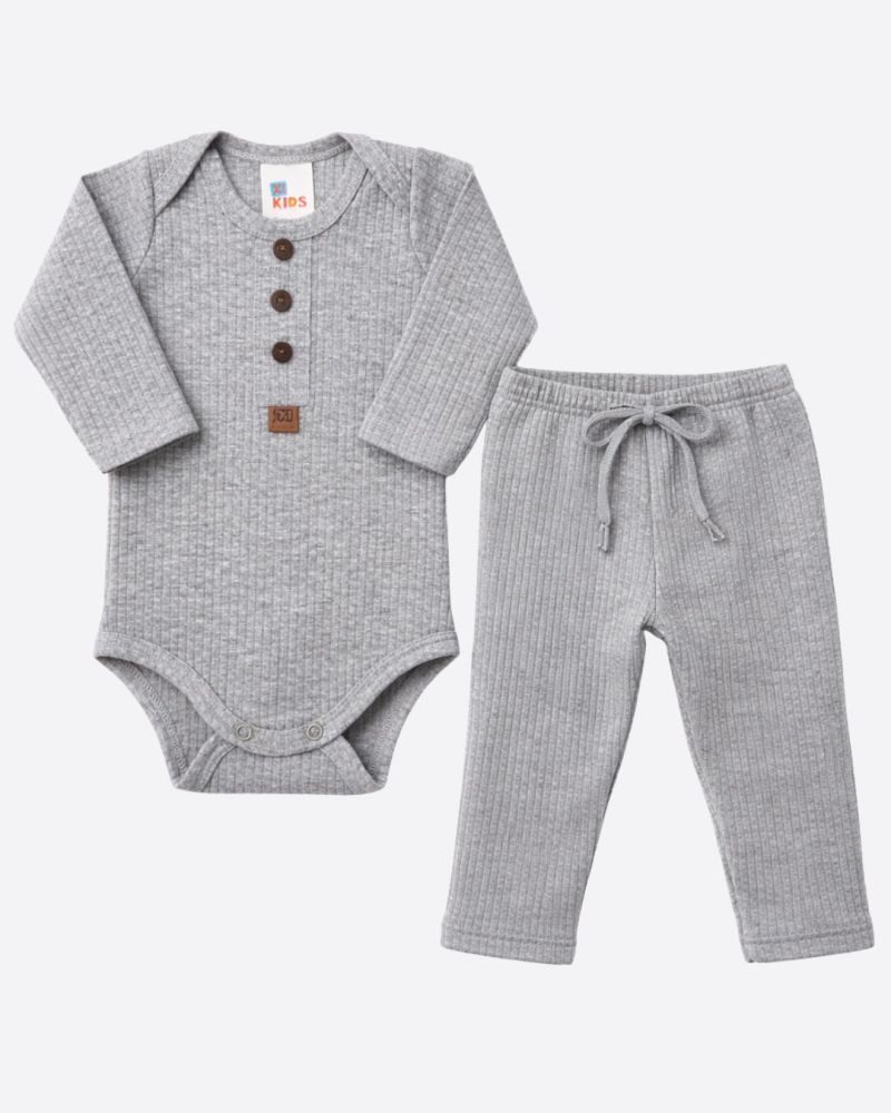 Conjunto Canelado 2 Peças Bebê Body e Calça Mescla Unissex