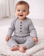 Um conjunto moderno e versátil, perfeito para deixar o bebê confortável e bem vestido em qualquer ocasião. O tecido canelado traz um visual mais estiloso, com ótimo caimento no corpo. O body possui gola envelope, facilitando na hora de vestir, além de botões frontais decorativos que dão um toque delicado e charmoso à peça. A calça conta com elástico na cintura, cordão decorativo garantindo conforto sem apertar.