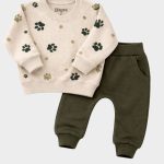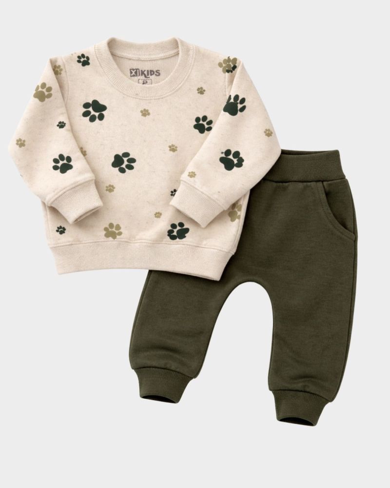 Conjunto Blusa de Moletom Em Linho Infantil 2 peças Estampa Patinhas