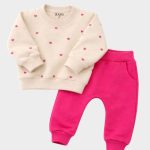 Esse é o conjunto mais fofinho que você ja viu! Confeccionado em moletom, ele é perfeito para deixar seu bebê confortável e estiloso. A blusa possui gola redonda, mangas longas, estampa de cerejinha e acabamento em ribana canelada para melhor ajuste. A calça com cós de elástico completa o lookinho, com um toque de charme, é a escolha perfeita para qualquer ocasião.