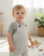 Com um toque super macio, um tecido leve, e a suavidade da modelagem soltinha e confortável, essa jardineira é uma peça essencial no guarda roupa do seu baby. Design minimalista, e ajuste da alça com botão são detalhes que a fazem ser aproveitada por muito tempo, e sem perder a graça. A clássica listra que é atemporal, sempre amada e desejada, sempre atual 🙂