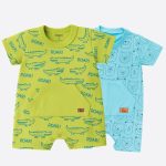 Kit 02 Macaquinhos Estampado Verde e Azul Menino
