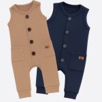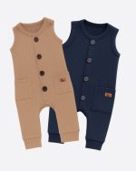 Kit 02 Peças Macacão Bebê Cappuccino e Azul Menino