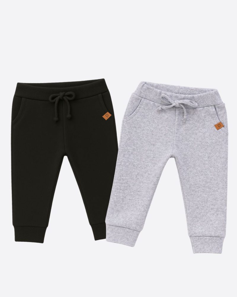 Kit 2 Calças Jogger Bebê Unissex Preto e Mescla em Algodão