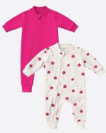 Kit 2 Macacões Bebê Liso e Estampado Pink