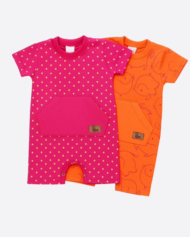 Kit 2 Macaquinhos Estampado Poá e Elefante Menina