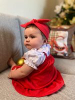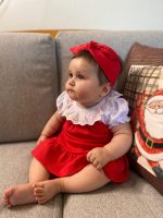 Kit 3 peças Bebê Vestido Body Faixa de Cabelo Vermelho Menina Natal