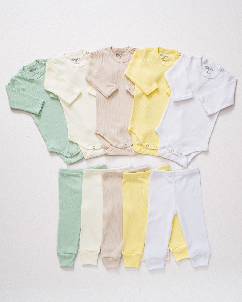 Kit 5 Conjuntos Pagão Canelado Bebê Unissex