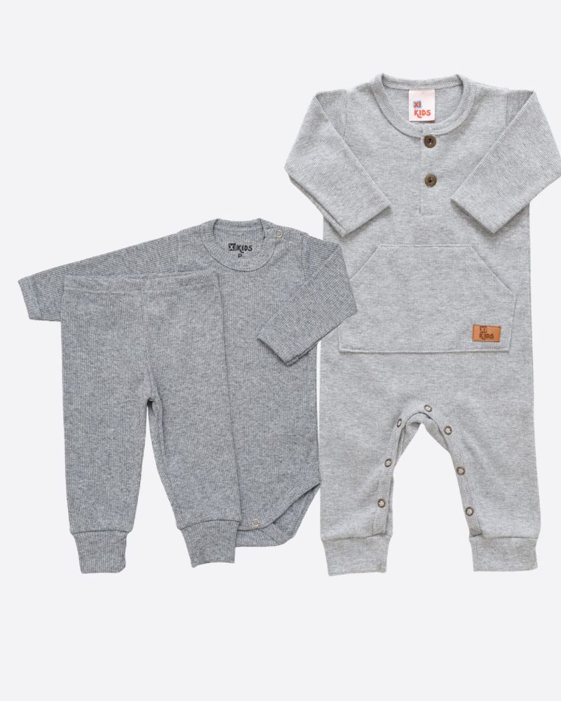 Kit Bebê Canelado 03 Peças Mescla Unissex