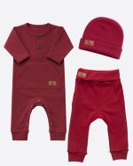 Kit Completo 3 Peças Com Macacão, Calça e Touca Vermelho Unissex
