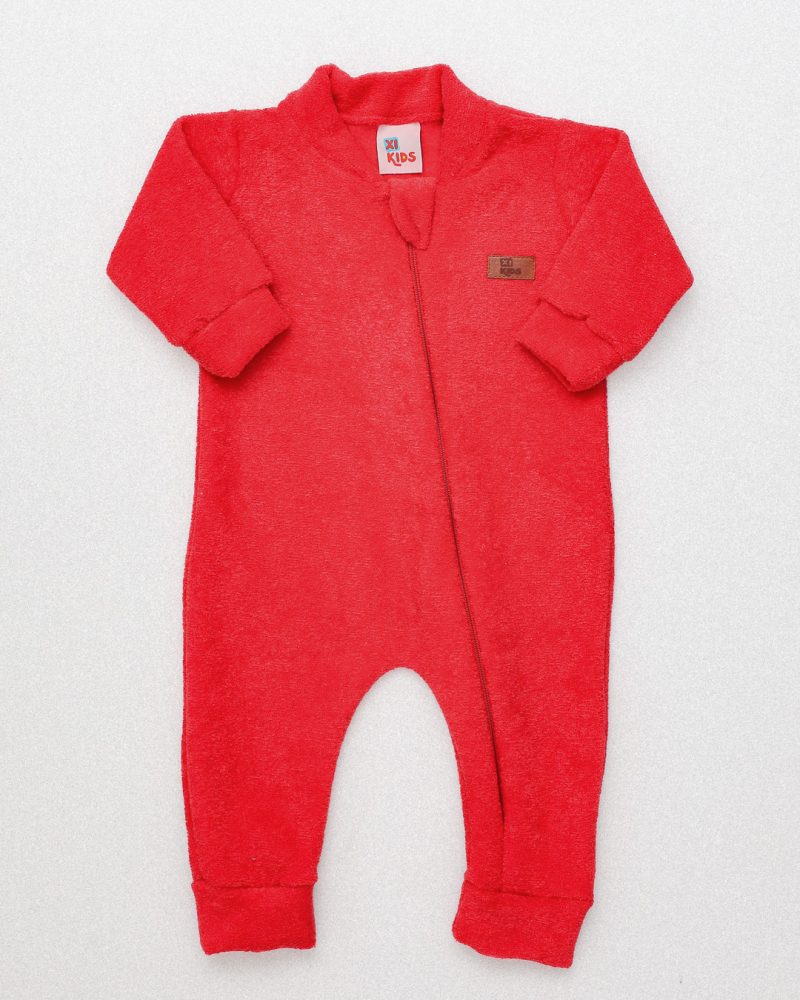 Macacão Bebê Manga Longa Plush Boucle Vermelho Unissex