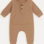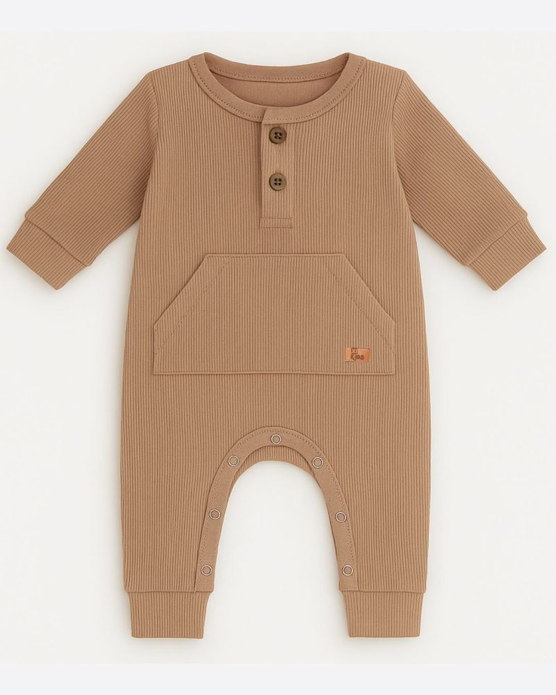 Macacão Bebê Manga Longa Canelado Cappuccino