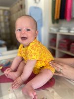 Macaquinho Bebê Amarelo Com Frutas Unissex