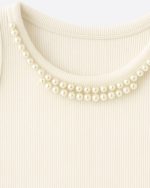Regata Bebê Ribana Canelada Bordados Pérolas