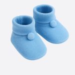 O sapatinho atoalhado mantem os pezinhos do bebê sempre aquecidos, confortáveis e protegidos, e o detalhe em botão traz um charme extra.