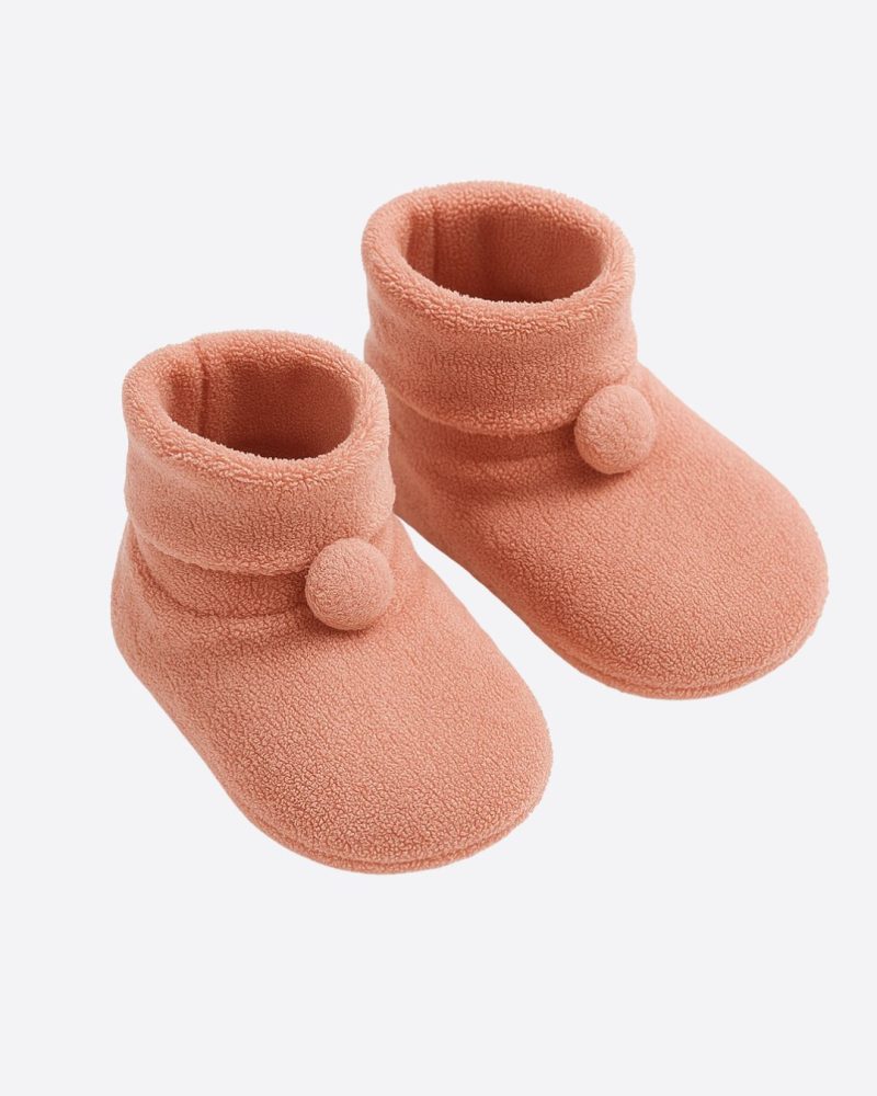 O sapatinho atoalhado mantem os pezinhos do bebê sempre aquecidos, confortáveis e protegidos, e o detalhe em botão traz um charme extra.