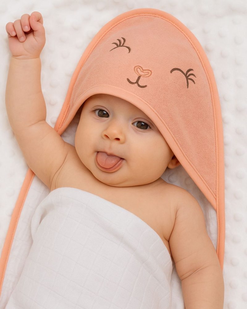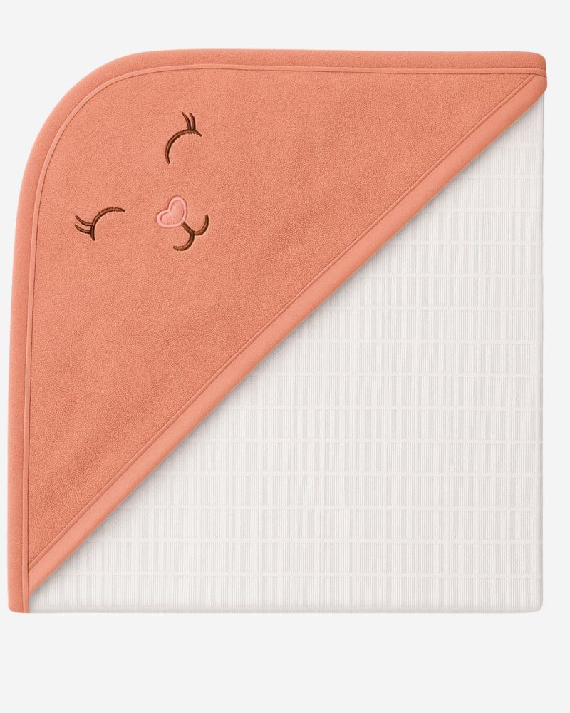 Deixe o momento do banho ainda mais especial com nossa toalha fralda com capuz, com um lado em tecido atoalhado e o outro em fralda, ela é extremamente macia, absorvente e delicada para a pele do bebê. O capuz com bordado fofo mantém a cabecinha aquecida, enquanto o tecido leve e respirável garante conforto e secagem rápida.