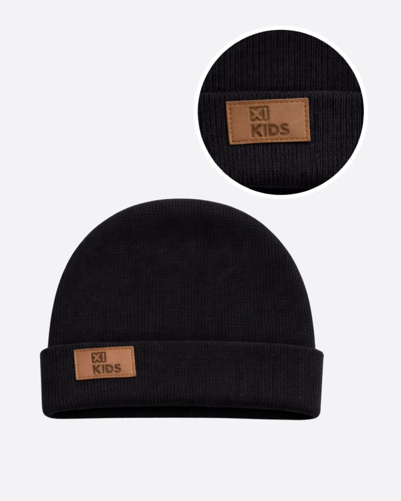 Touca Gorro Bebê Canelada Com Dobra Preto Unissex