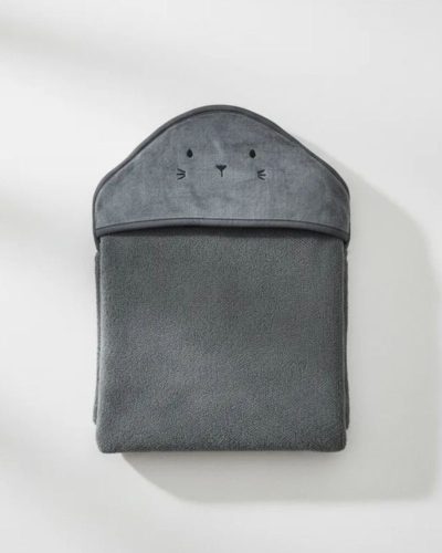 Toalha Fralda com Capuz Estampado Cinza